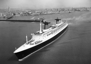 Paquebot France à la sortie du port en 1964.